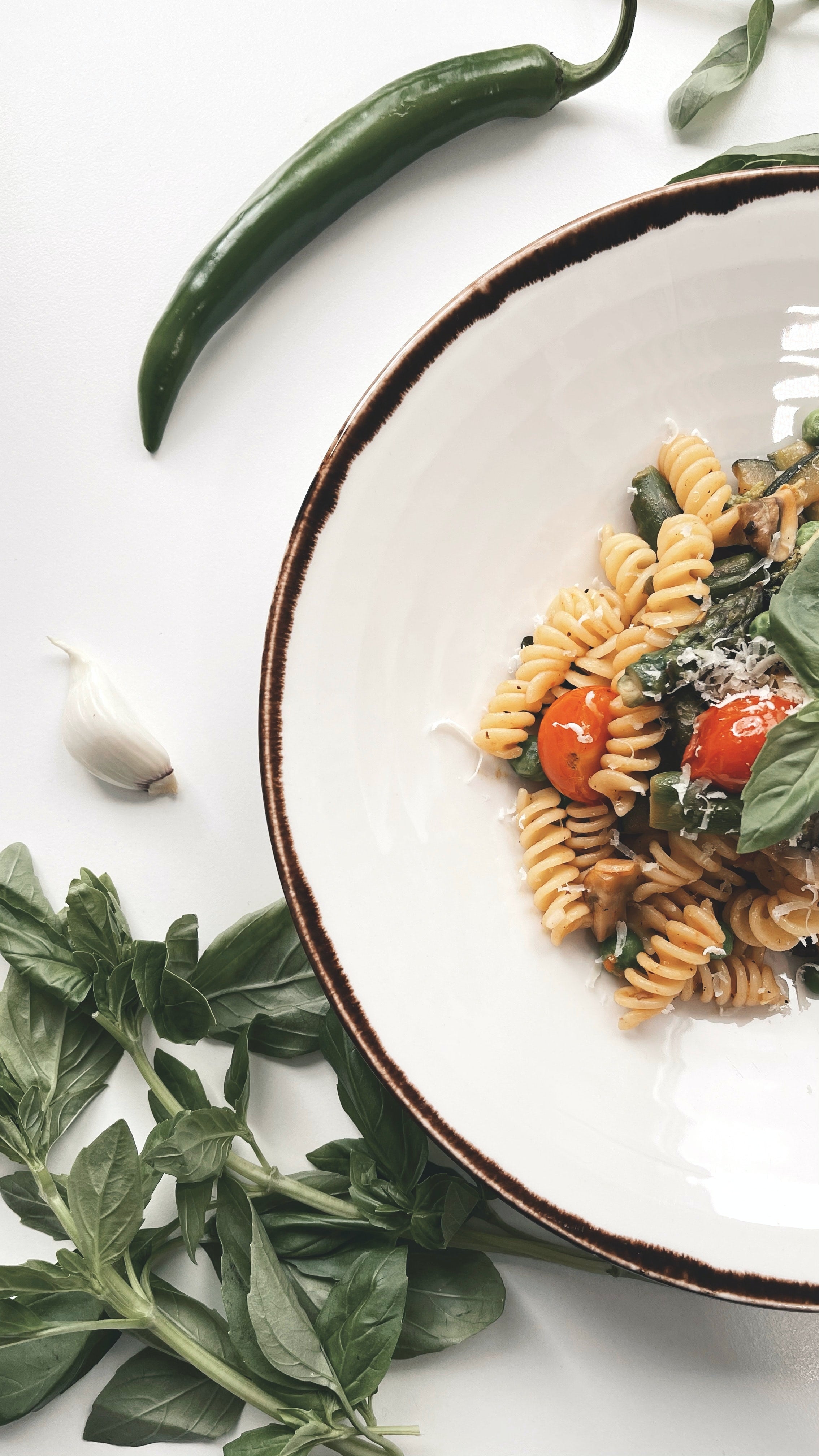 Penne con Berenjena, Tomates Cherry, y Jalapenos