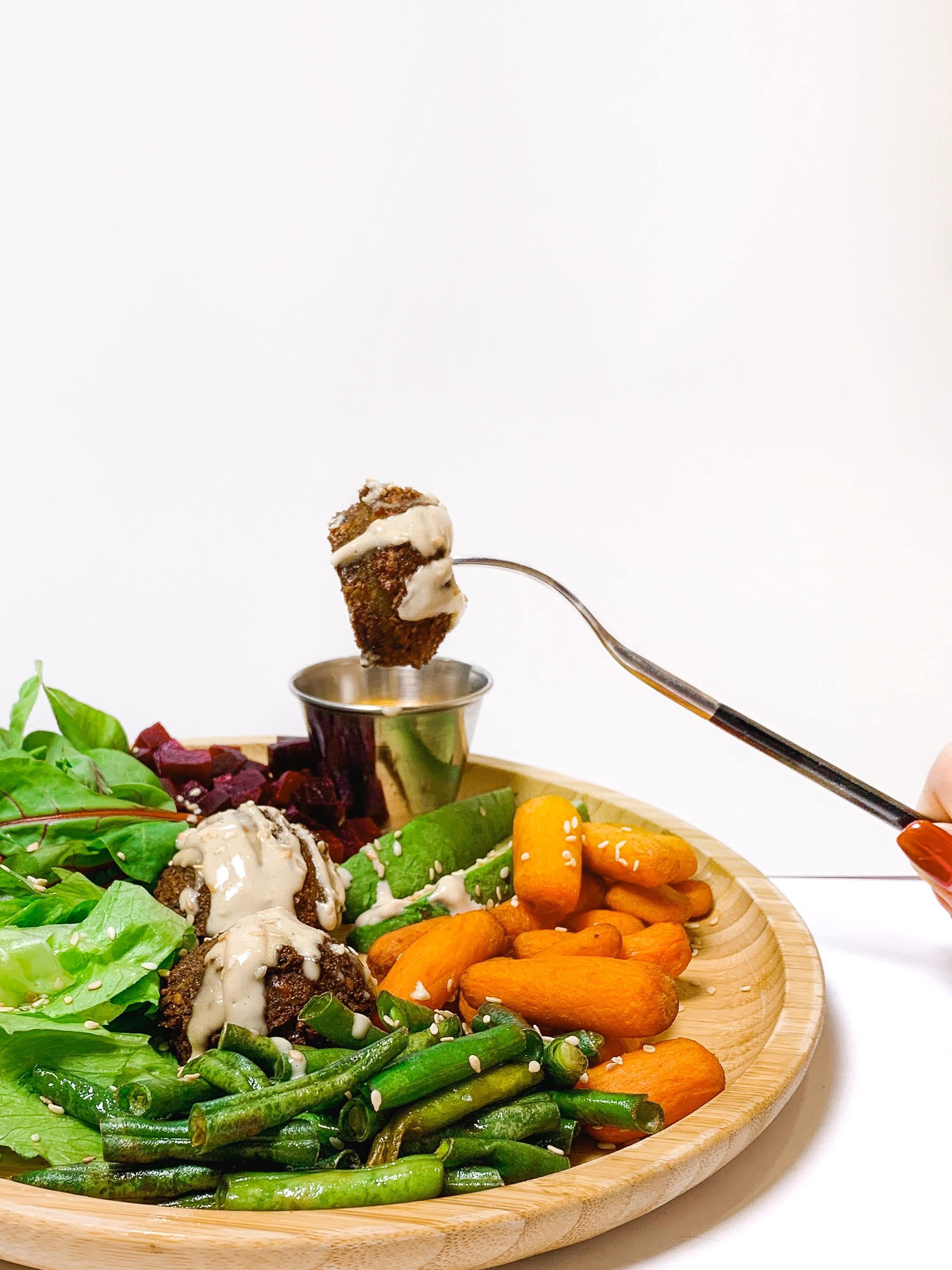 Transfiera el falafel cocido a un plato forrado con papel toalla, espolvoree con un poco de sal y luego repita con las bolas de falafel restantes. Servir inmediatamente con tahini.
