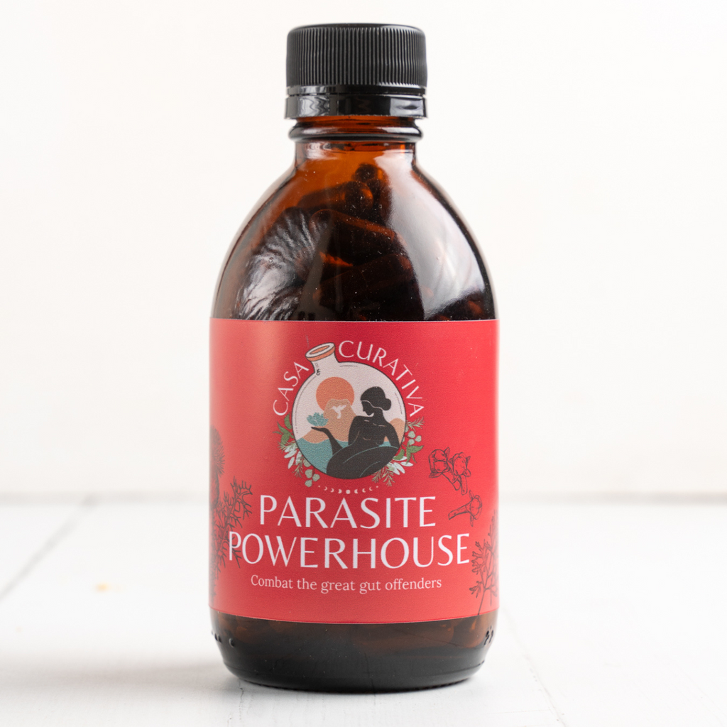 Ingredientes: Clavo, cáscara de nogal negro, ajenjo, neem, ajo, epazote, cardo mariano y cápsulas veganas