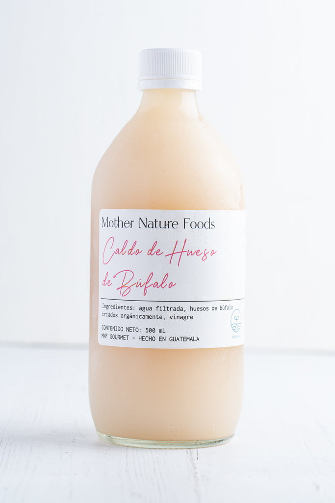 Ingredientes: hueso de bufalo orgánico, agua filtrada, vinagre de kombucha, sal marino