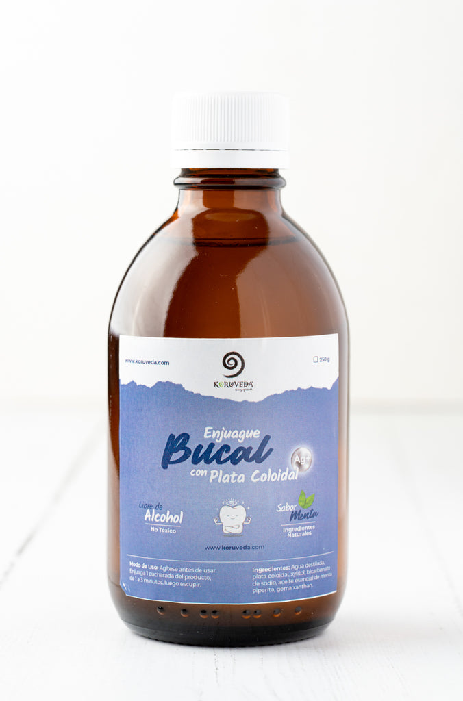 Este enjuague bucal es completamente diferente a los demás porque contiene plata coloidal. La plata coloidal es un efectivo tratamiento contra cualquier tipo de bacteria, hongo y virus. Es altamente recomendado para la desinfección y funciona como un potente antibiótico sin dañar el organismo ni contaminar el ambiente luego de ser desechado.