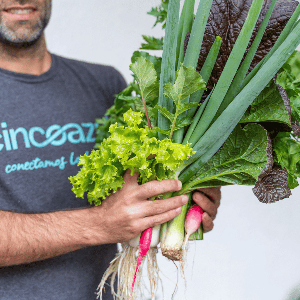 Vegetales diversos: aguacate hass (1 lb), zanahoria (2 lb), guisquil (1 un), repollo morado (1 un), brócoli (1 un) y apio baby (1 lb).