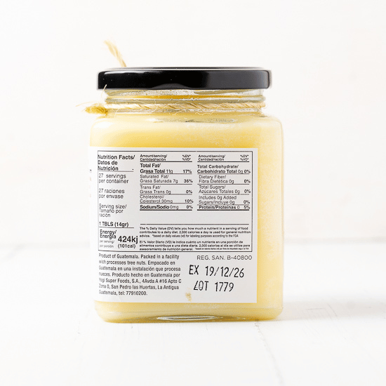 En Yogi Superfoods, creemos que la mejor manera de lograr una salud óptima es nutrir su cuerpo con alimentos integrales ricos en nutrientes. Por eso estamos orgullosos de ofrecer nuestra mantequilla clarificada Ghee premium, un alimento básico en la cocina ayurvédica e india durante siglos. Nuestro Ghee es de pasto.