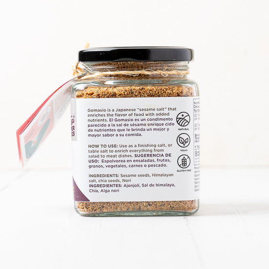 El Gomasio es un condimento japonés a base de semillas, sustituto de la sal de mesa. Es fuente de proteínas, ácidos grasos esenciales, fibra, calcio hierro y de sabor delicioso.