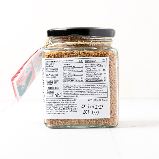 INGREDIENTES: Semillas de Ajonjolí orgánico, Sal de la Himalaya, Alga Nori y semillas de Chía orgánica.
