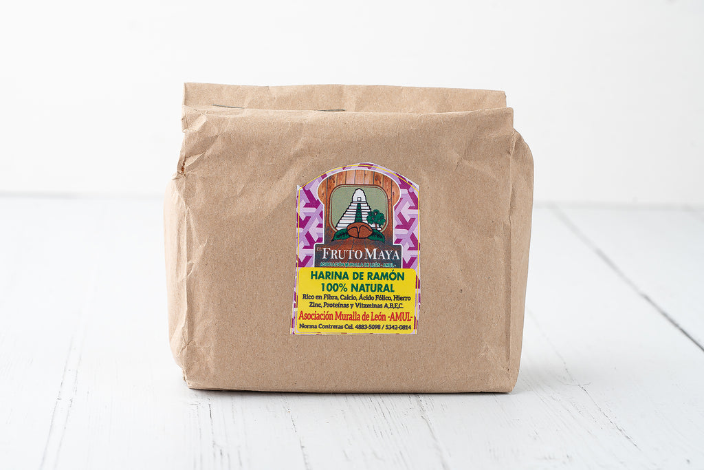 Descripción: La Harina de Ramón es un superalimento tradicional derivado de la semilla de ramón, un árbol conocido en Petén como "el árbol de la vida" (Brosimum alicastrum). Este producto es altamente nutritivo y sostenible, siendo una excelente fuente de vitaminas B2, B5, C y E, además de minerales esenciales como calcio, hierro, zinc y ácido fólico. Libre de cafeína y gluten, esta harina puede ser utilizada en una amplia variedad de alimentos, como batidos, tortillas, pasteles, panqueques, y más.