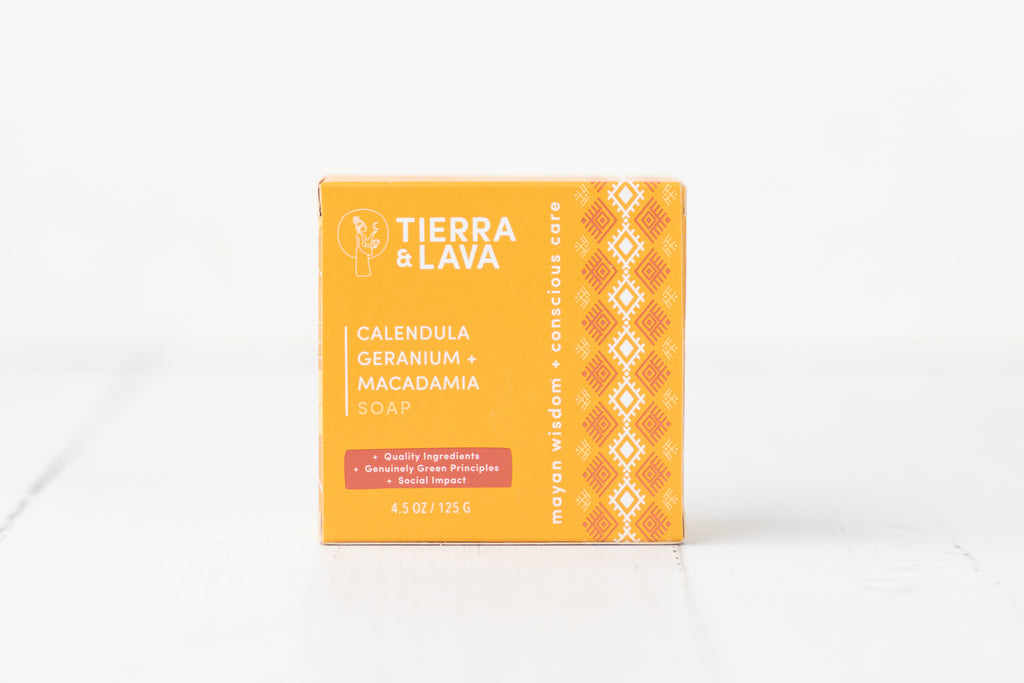 La caléndula, también conocida como Flor de Muerto debido a su lugar en las celebraciones del Día de Muertos en Guatemala, se ha utilizado en la medicina maya para curar heridas e inflamaciones. Este jabón combina sus propiedades calmantes para la piel con una mezcla de aceites esenciales florales y cítricos y las propiedades humectantes del aceite de macadamia y la manteca de cacao.