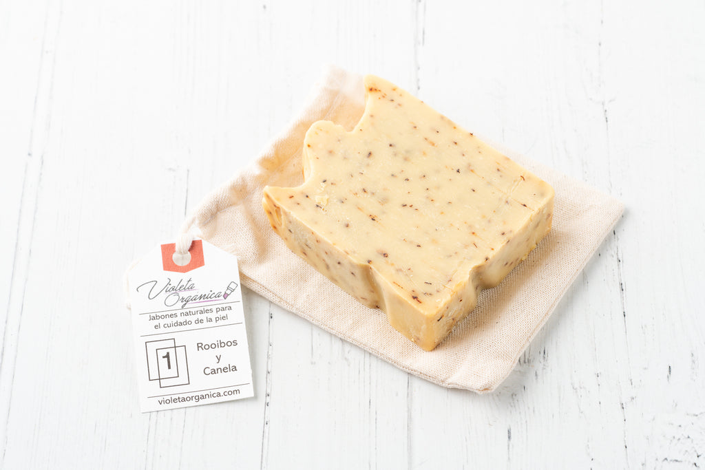 Ingredientes: Aceite Saponificados de oliva, coco, karite, soya y ricino, agua, tisana de rooibos de Te Shop, aceite esencial de canela.