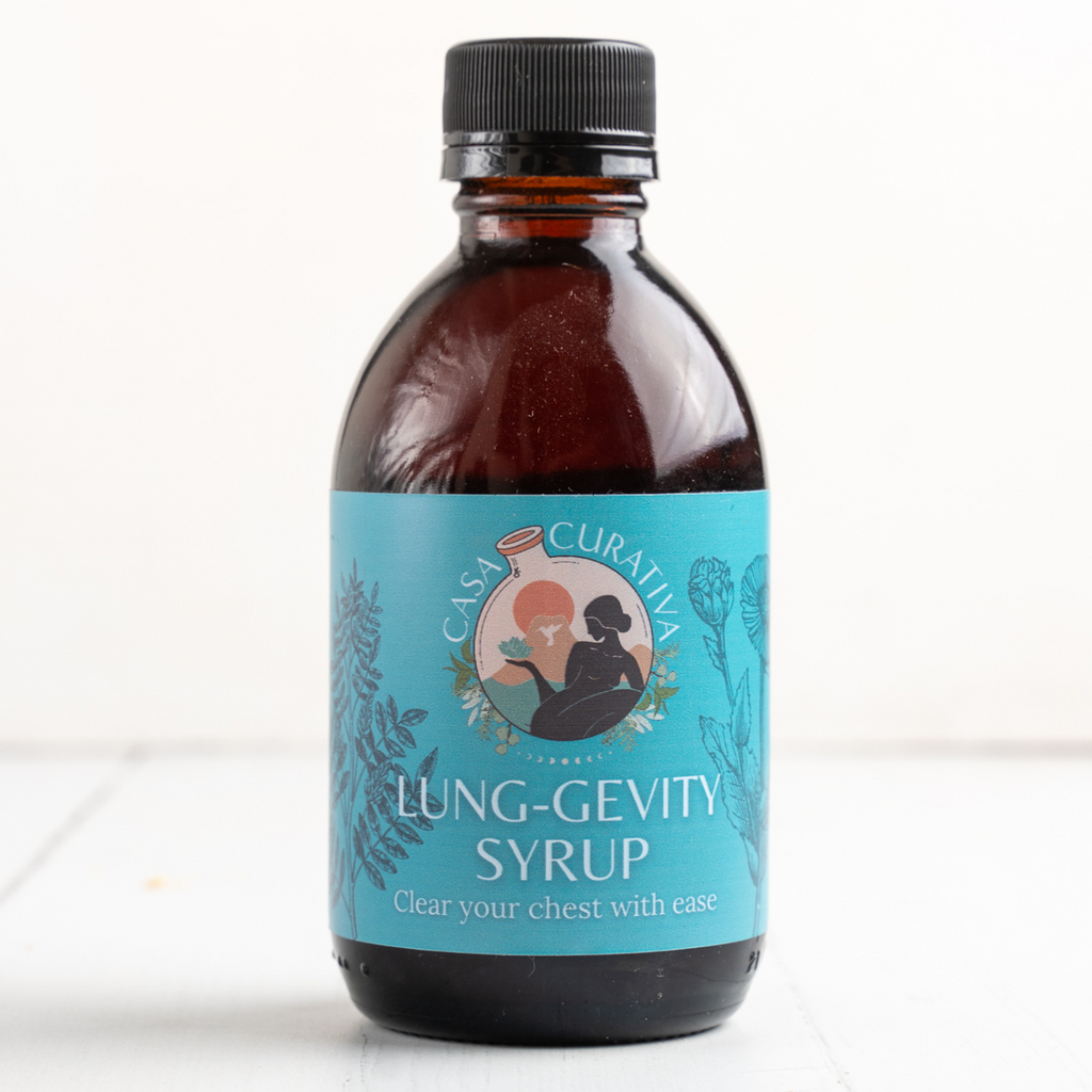 Este es nuestro producto recomendado para tratar la tos de cualquier tipo, el resfriado y la gripe, el COVID y para limpiar el pecho de flemas por la exposición al moho. Esta estimulante mezcla de hierbas actúa profundamente para reparar los pulmones y revitalizar el sistema inmunológico. Para uso preventivo o a largo plazo, recomendamos 1 cucharada al día. En el tratamiento de infecciones respiratorias, recomendamos 1 cucharada cada 3-6 horas.