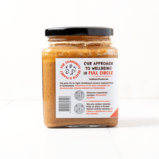 No todas la mantequillas de almendras son creadas igual! La mantequilla de almendras tostadas de Yogi Superfoods está hecha de almendras recién tostadas de alta calidad que se muelen a la perfección, creando una textura suave y cremosa que es fácil de untar y disfrutar. Utilizamos solo los mejores ingredientes, asegurándonos de que nuestra mantequilla de almendras tostadas no contenga conservantes, aditivos ni sabores artificiales. Nuestra mantequilla también es vegana, sin gluten y sin OGM, lo que la convierte en una opción saludable y deliciosa para todos.
