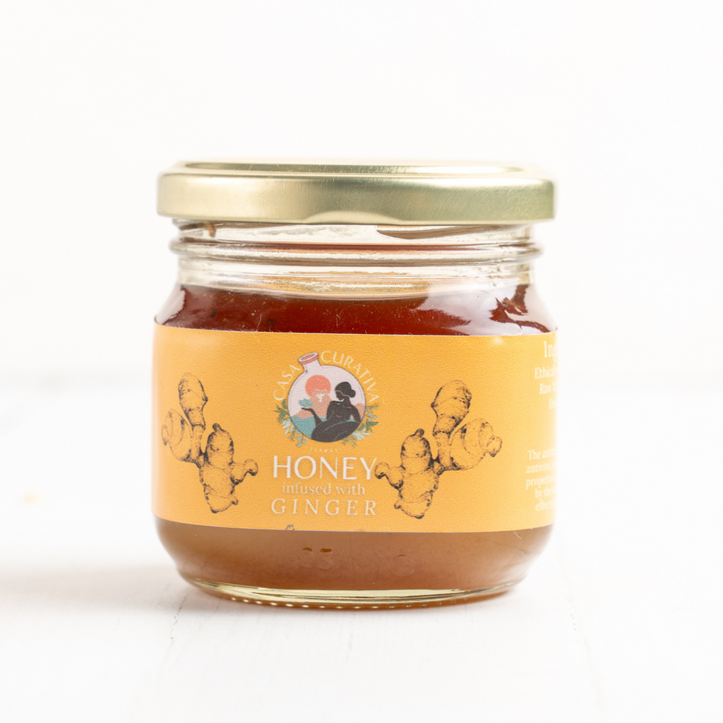 Ingredientes: miel local y cruda, raíz de jengibre fresca