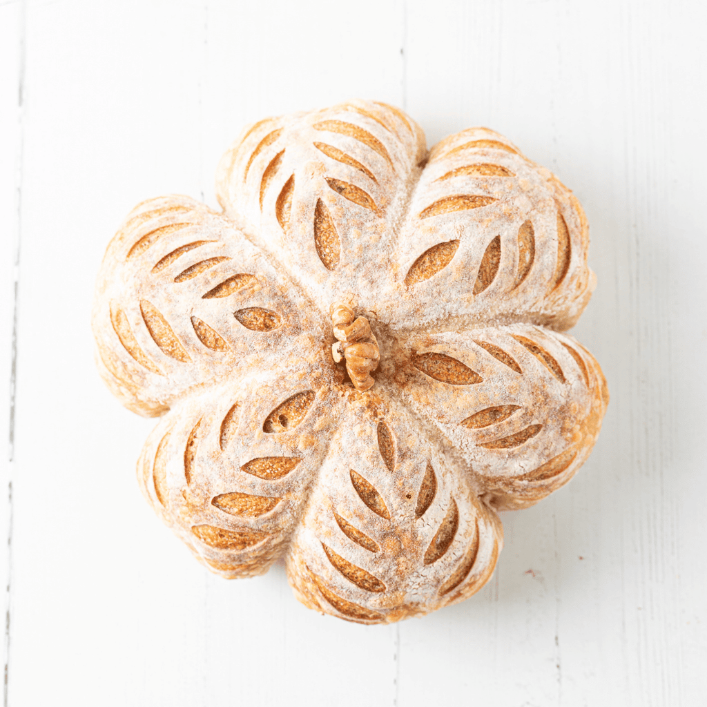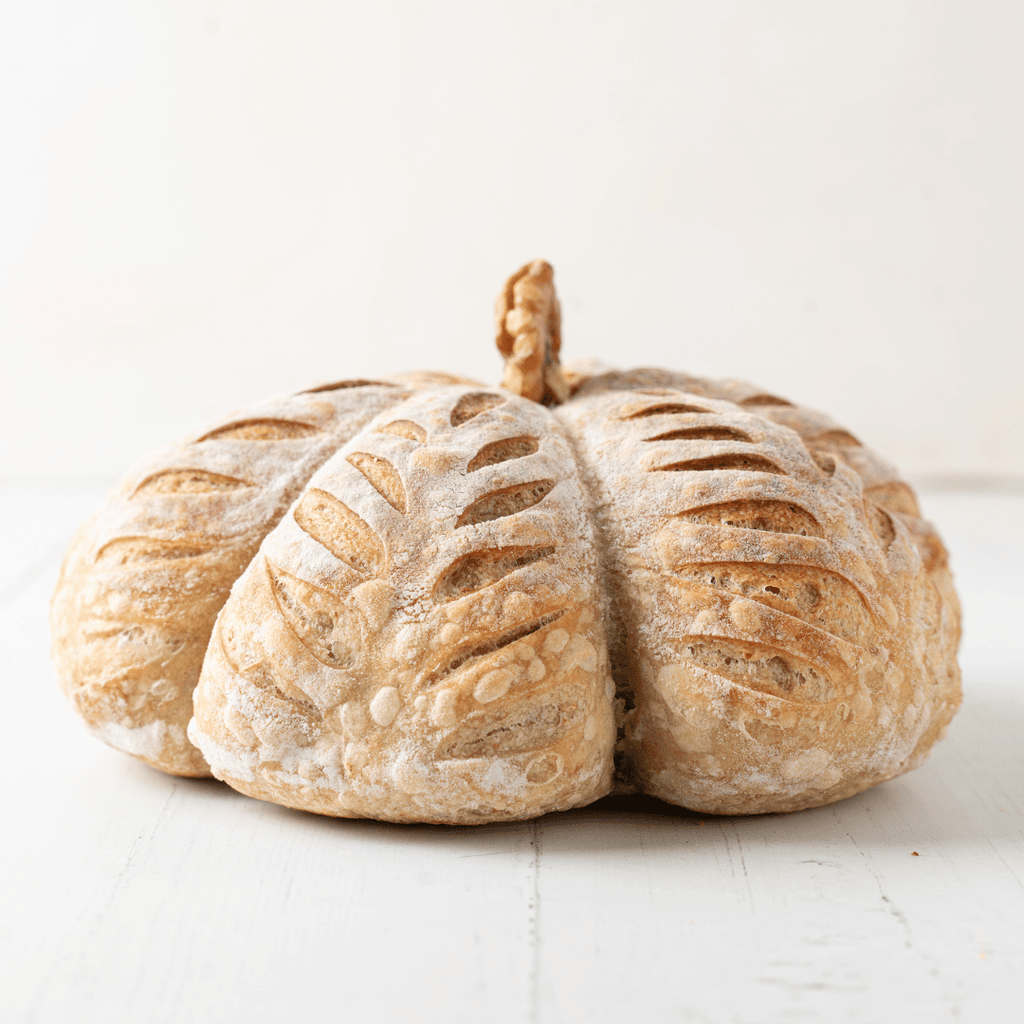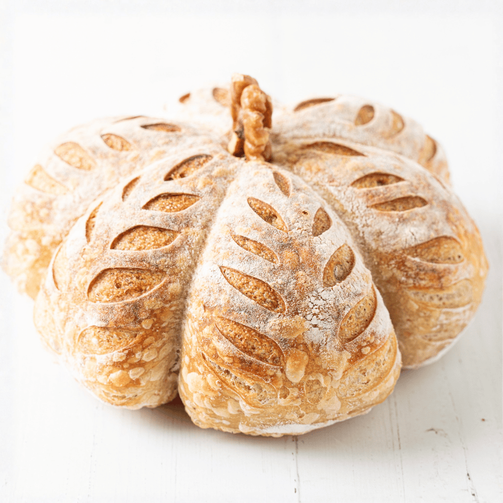 ¡La estrella de tu mesa este otoño! Nuestro pan rústico de masa madre tiene una fermentación lenta, sabor profundo y la forma más encantadora. Es el regalo o la pieza central ideal para llevar a cualquier reunión de temporada.