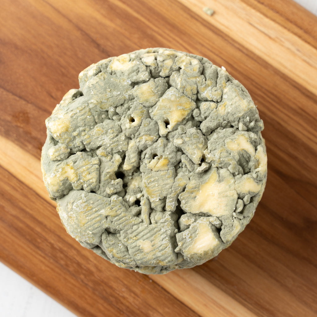 Ingredientes: Leche entera orgánica, cuajo, cultivos lácteos, Penicillium Roqueforti, sal marina sin yodo