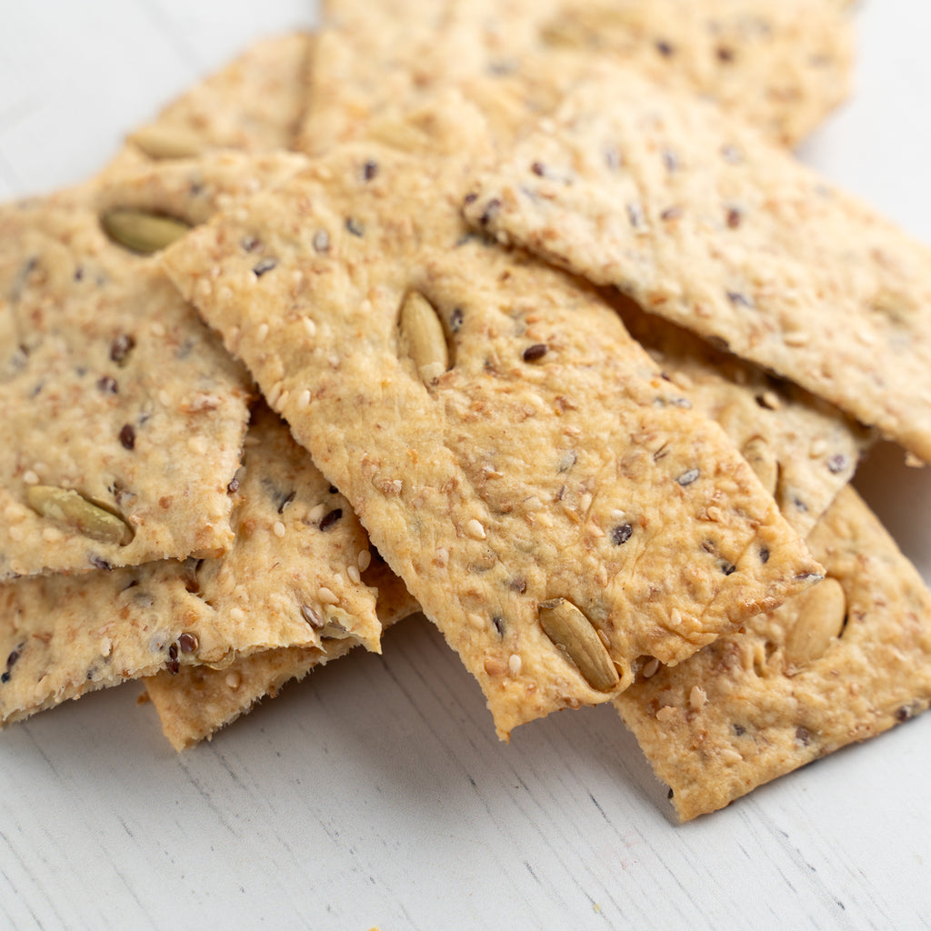 Ingredientes: harina blanca, harina integral, aceite oliva, sal, pepitoria, linaza y ajonjoli