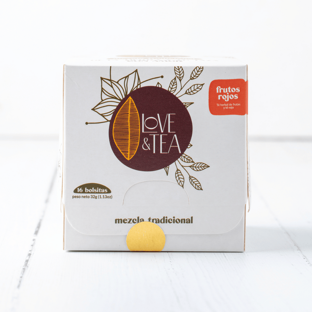 Ingredientes: rooibos, mora, fresa, arandano azul, manzana, maracuya, rosa de jamica, rosa, rosa mosqueta, cascara de naranja y piña.